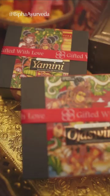 SHOP NOWYamini - Miniature Gift Series - Red sandal skin spa essentialsYamini, our luxe red sandalwood collection from Kovilakom Secrets, captures the essence of red sandalwood or rakshachandana, a slow-growing rare tree mostly found in southern India. Yamini, in Sanskrit meaning "night" or "moon," has magical blemish-fighting properties. This precious botanical removes suntan, evens skin tone, and fades dark spots to make your skin glow. This collection is the perfect ayurvedic night cream, combining the sandalwood cream benefits of red sandalwood with a blend of natural ingredients. The chemical-free face cream formula ensures your skin is nourished without harmful additives, making it an ideal chemical free night cream for sensitive skin. This pack is a complete skincare ritual featuring: Yamini Red Sandalwood Cream, a luxurious herbal night cream for scars and a powerful cream for dark spots and blemishes. It also works as a gentle natural cream for acne scars to help renew your skin overnight. Yamini Red Sandalwood Herbal Bar, enriched with botanicals, this soap complements the cream’s anti-aging properties by acting as a mild cleanser. Yamini Red Sandalwood Powder, a traditional ingredient that supports skin detoxification and helps reduce fine lines, making this an effective anti-aging cream for fine lines ritual. Additionally, the collection features a soothing paraben-free night balm infused with calming lavender night cream extracts, which help relax the skin and reduce signs of stress.Sale Sold outRegular price Rs. 1,560.00Regular priceUnit price perSale price Rs. 1,560.00 -