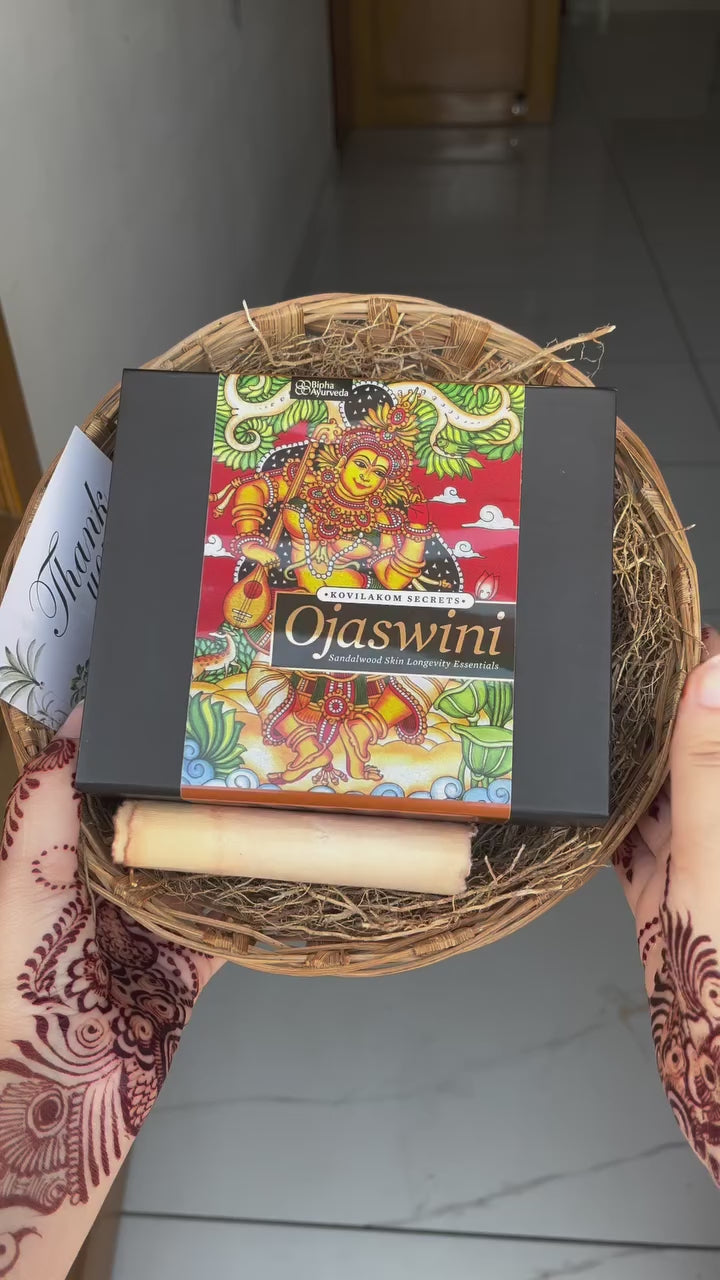SHOP NOWOjaswini - Miniature Gift Series sandalwood skin longevity essentialsOjaswini ,oru luxe sandalwood collection from kovilakom secret, weaves a potent spell on your skin; coaxing it into agelessness with a wonderful day ritual where sandalwood is the heroine. chandan as sandalwood is known in India, is hailed as one of Ayurveda's most precious skin care botanicals and is incomparable in its powers to replenish moisture and revitalize the skin. This Pack contains OjaswiniMarayoor Sandalwood Cream OjaswiniMarayoor SandalwoodHerbal Bar OjaswiniMarayoor Sandalwood PowderSale Sold outRegular price Rs. 1,560.00Regular priceUnit price perSale price Rs. 1,560.00 -