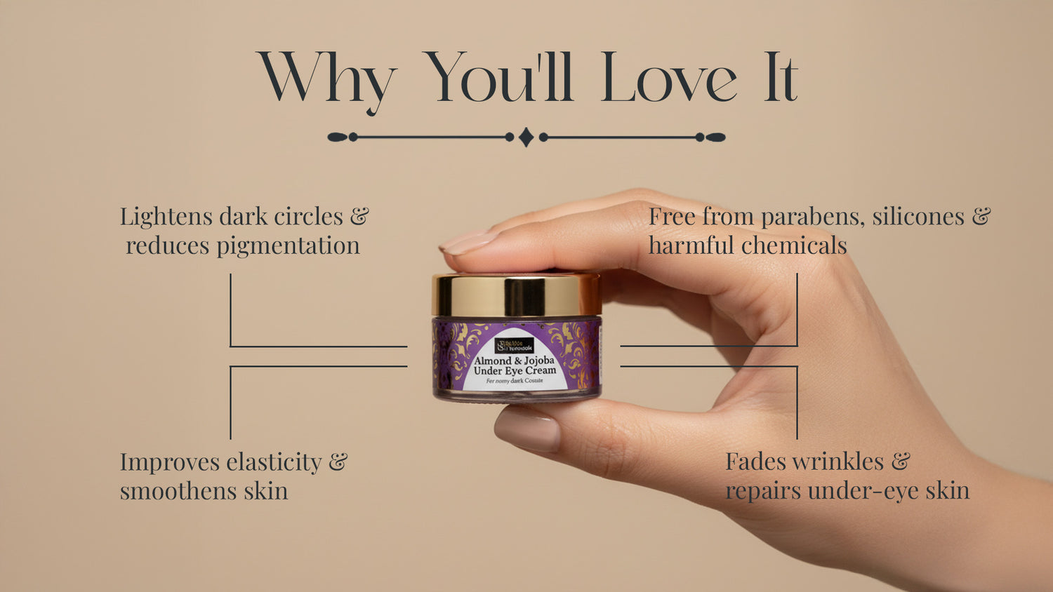 Free from harmful additives, it's a chemical free under eye cream ideal for daily use. A perfect under eye cream for dark circles and a rejuvenating cream for eye wrinkles – all in one pure formula.
