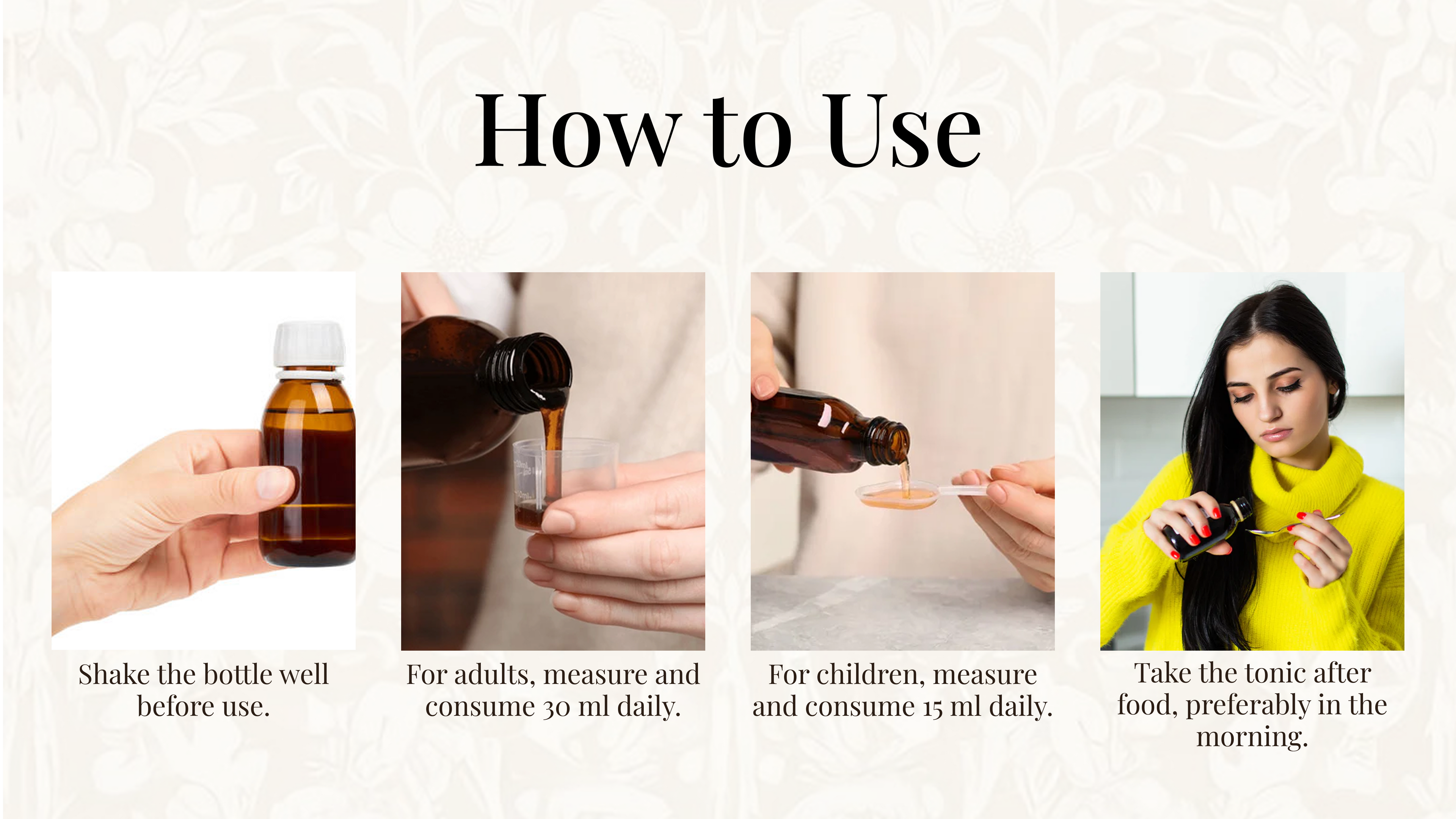 A combination of ten herbs with the ability to act on a wide range of health problems. A strong stimulant, it relieves fatigue, lack of appetite and indigestion. Widely used as a general tonic in old age and post-natal care, it is also recommended for cardiac disorders, respiratory diseases, asthma and breathing troubles, cough, pneumonia, gastric irritation and anaemia.
