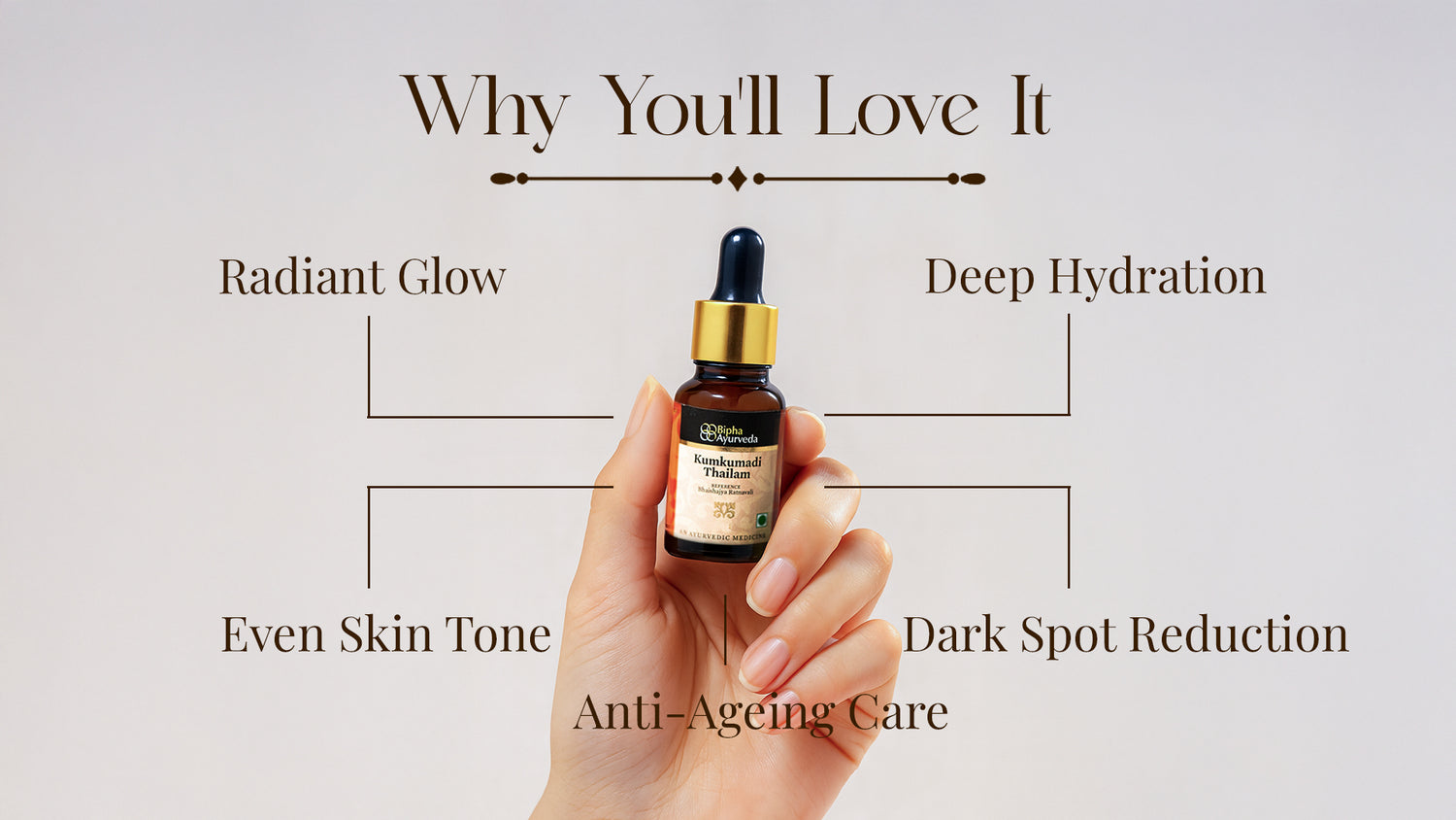 Bring back your natural glow with this Ayurvedic beauty serum made using pure kumkumadi tailam for the face.