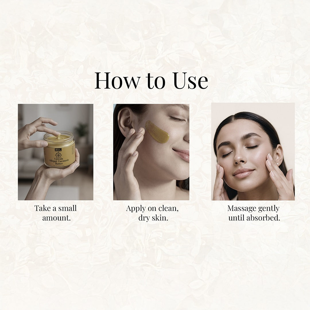 Enriched with body butter with coconut oil and almond oil body moisturizer benefits, it provides deep hydration and locks in natural moisture, making it a perfect hydrating body butter for dry skin. The gentle formula doubles as a turmeric moisturizer for face and body, brightening dull areas while calming irritation.